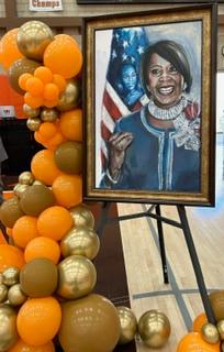 Photo on left, unveiled portrait of the late Sheila Y. Oliver, Class of 1970, Speaker of NJ General Assembly and NJ Lt. Governor, which portrait will hang in the WHS Media Room. Photo on right, plaque honoring Hall Braff (6/52) for creating the WHS Alumni Association.