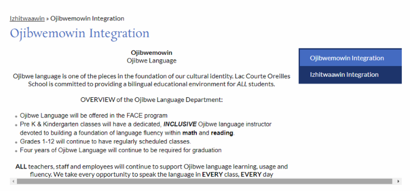 The College of Menominee Nation and Lac Courte Oreilles Ojibwa Community College area two tribal colleges located in the state of Wisconsin. The primary campuses for these colleges are located on the Lac Courte Oreilles and Menominee nations with outreach sites in surrounding communities.