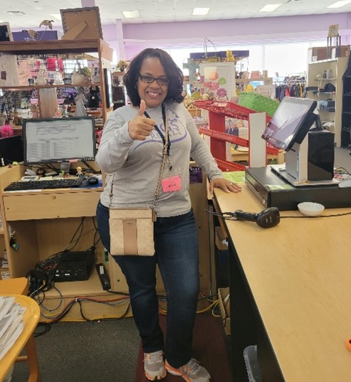 WINGS Resale - Arlington Heights staff and volunteers wearing purple for Purple Thursday. | |