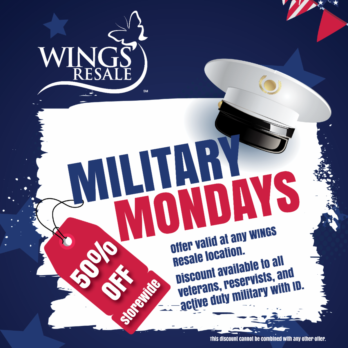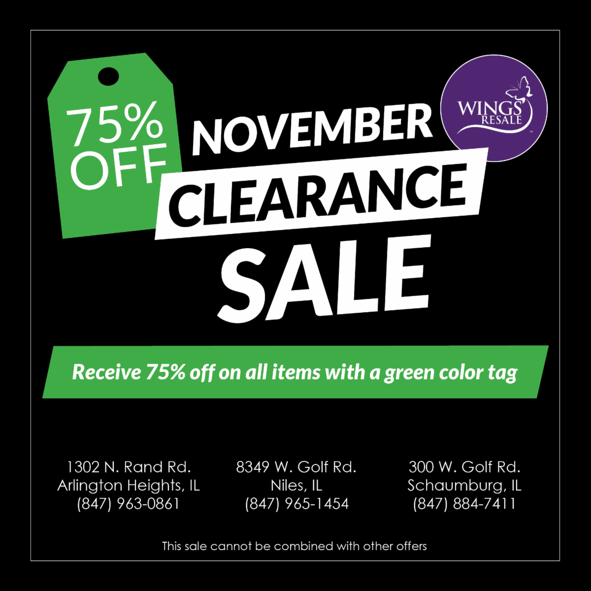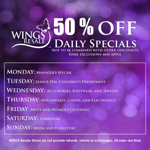 Start your holiday shopping at WINGS Resale during our Black Friday and Small Business Saturday 50% off weekend sale.