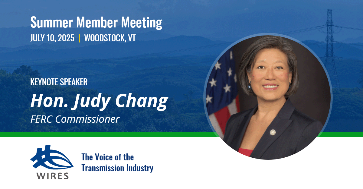WIRES is looking forward to gathering with our members and invited guests July 9-10 at the Woodstock Inn in historic Woodstock, Vermont, for our Summer Member Meeting. We're honored to welcome FERC Commissioner Judy Chang as our keynote speaker. The program will also feature two dynamic panel sessions focusing on GETS and other advanced transmission technologies, and the significant resilience challenges facing today’s grid.
