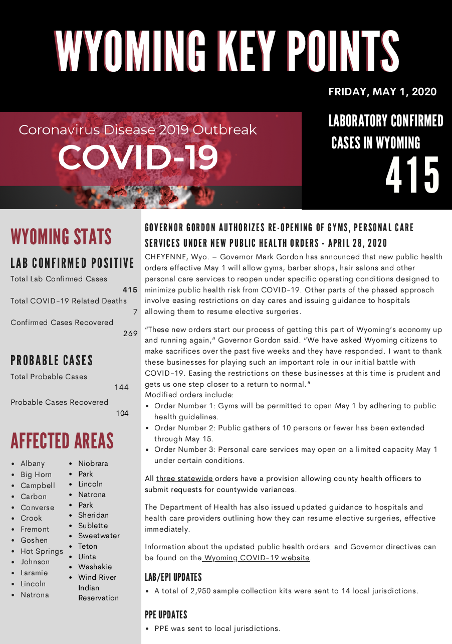 Medical workers and first responders who would like the offered free legal services should call (307) 432-2105. More information is available at