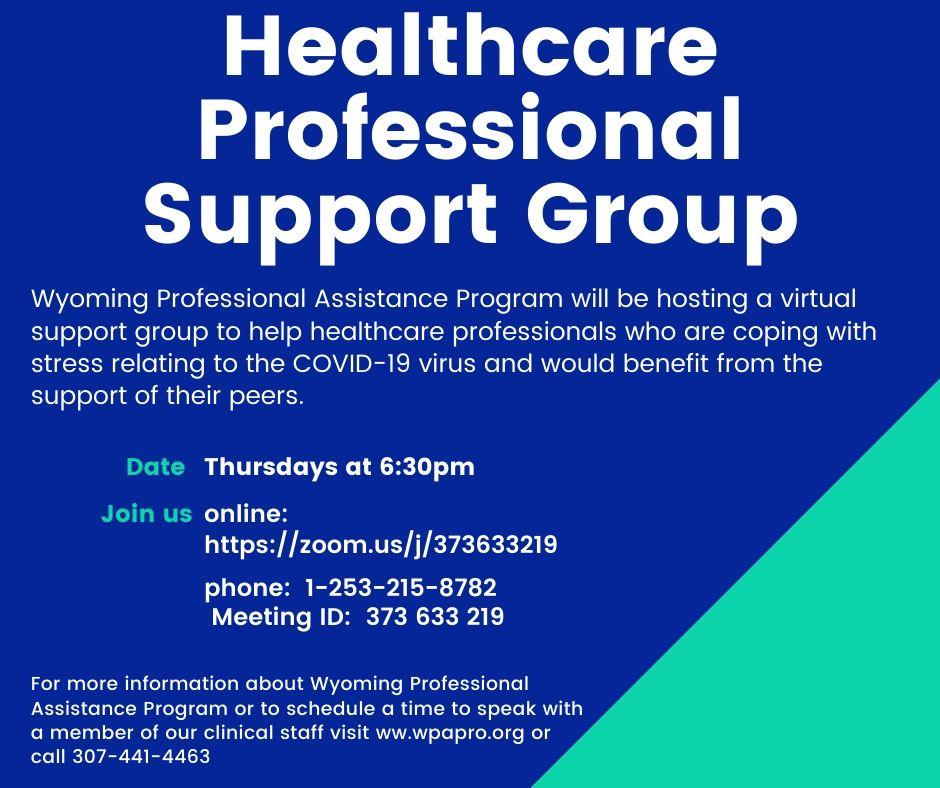 The Wyoming Professional Assistance Program is hosting a Zoom meeting for healthcare professional each Thursday at 6:30.