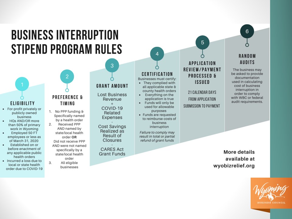 Up to $50,000 for WY businesses, employing fewer than 50 people