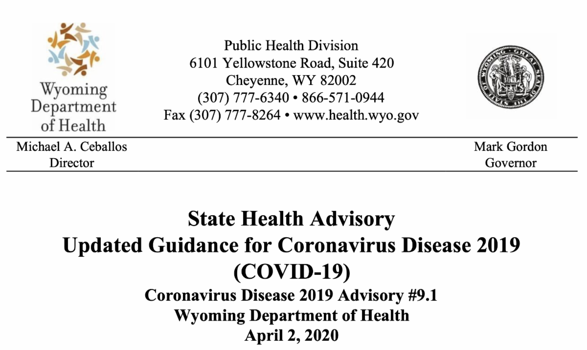 On behalf of the Unified Command for Wyoming COVID-19 Response and the Policy Group, we are providing the following new guidance for PPE distribution effective March 31, 2020.