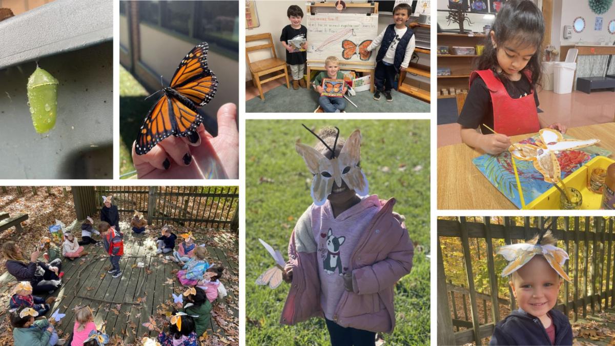 Exploring the fascinating world of monarch butterflies is a favorite tradition in WMS early childhood classrooms. In Room 19, this year's butterfly studies culminated in a migration adventure on our campus. Inspired by the discovery of a chrysalis near their classroom, students delved into learning about four stages of metamorphosis, creating dances, art and writing about the monarch life cycle. When the children missed the monarch's emergence the chrysalis, the they asked, "Where did she go?" This sparked a discussion about monarchs' incredible 4,000-mile migration journey to warmer climates in Southern California, Florida and Mexico.