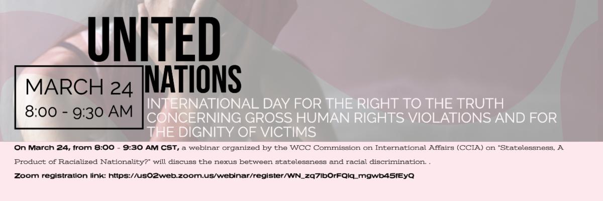 We invite you to join us TODAY, Thursday, March 24, 2022 at 8:00 AM (CST) for a webinar organized by the WCC Commission on International Affairs (CCIA) on “Statelessness, A Product of Racialized Nationality?” Discussing the nexus between statelessness and racial discrimination.