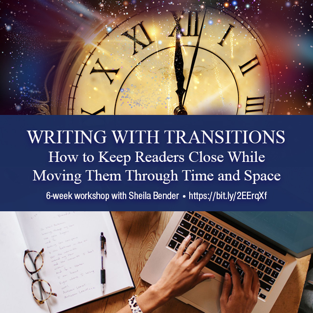 Writers often have trouble leading readers from scene to scene smoothly when it requires a change in time or space, large and small. This class will concentrate on learning how to make those transitions in ways that do not jar readers but keep them engaged and well-grounded in essays, poems or stories. Led by Sheila Bender!