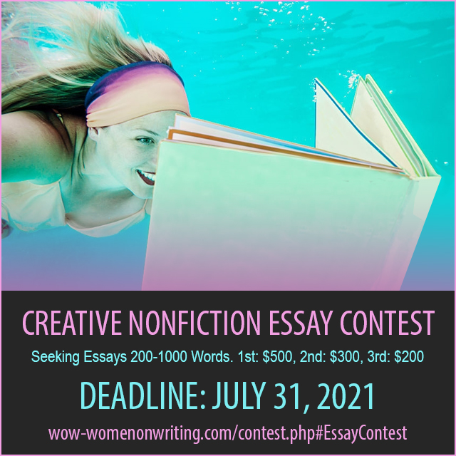 Do you have a creative nonfiction essay 1,000 words or less ready to submit? WOW's Q4 2021 CNF Essay Contest is seeking submissions! There are 20 winners, and the contest is open to all types of essay—from personal essay and memoir pieces to lyric and hybrid essay, and beyond! 1st Place: $500. 2nd: $300. Third: $200. Gift cards. Previously published essays are okay to submit!
