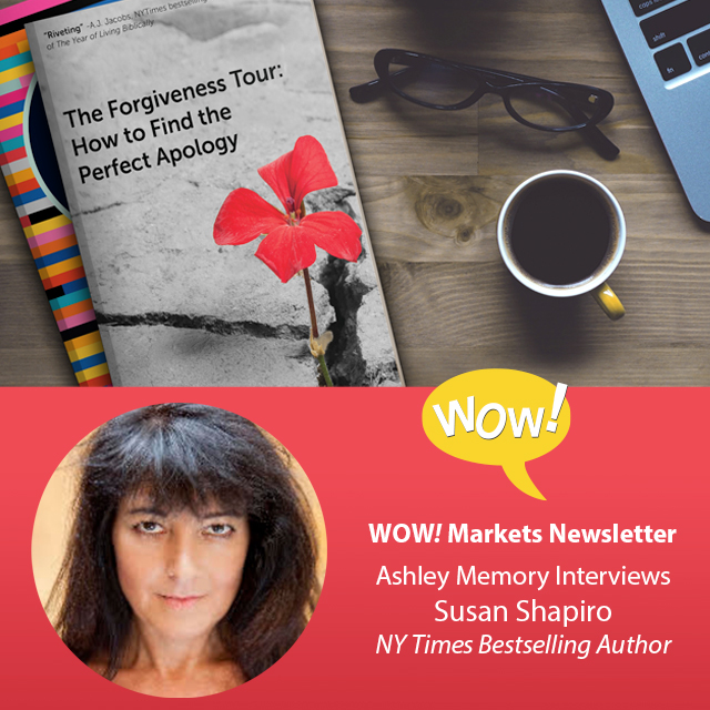 In this month’s issue, we’re providing tips to help beat writer’s block, and we’re also interviewing New York Times bestselling author Susan Shapiro about her new memoir, The Forgiveness Tour: How to Find the Perfect Apology. Susan epitomizes talent and persistence, and you’ll be inspired by her humor and words of wisdom.
