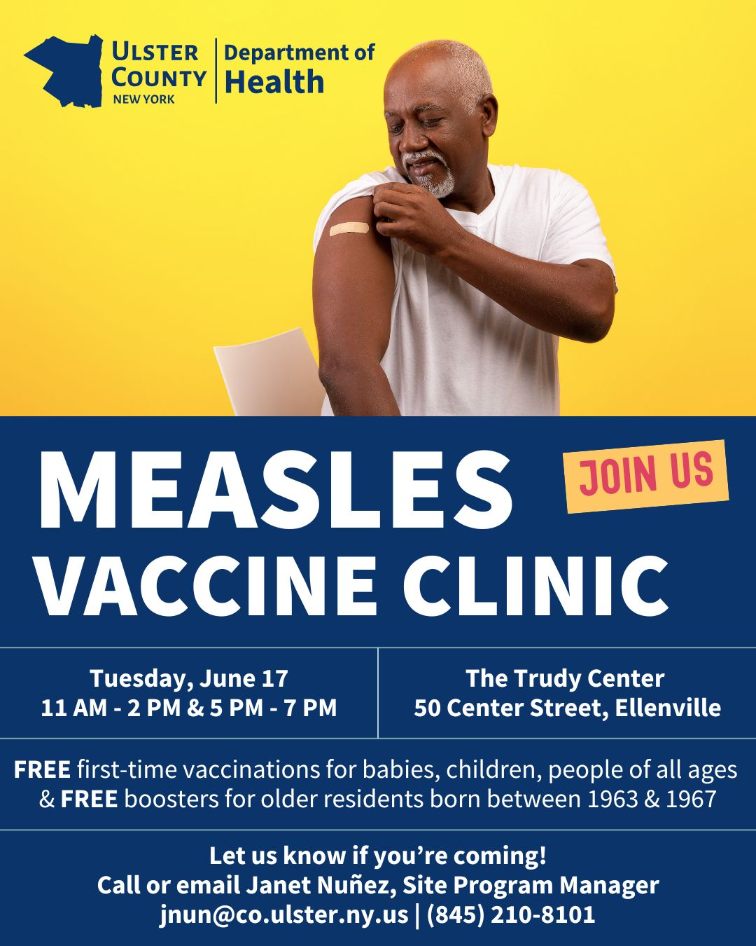 Nurses will provide first-time vaccinations for children and people of all ages as well as boosters for older residents born between 1963 and 1967. As measles outbreaks continue to pose significant public health risks, the Ulster County Department of Health urges residents — especially parents of young children — to prioritize vaccination.
