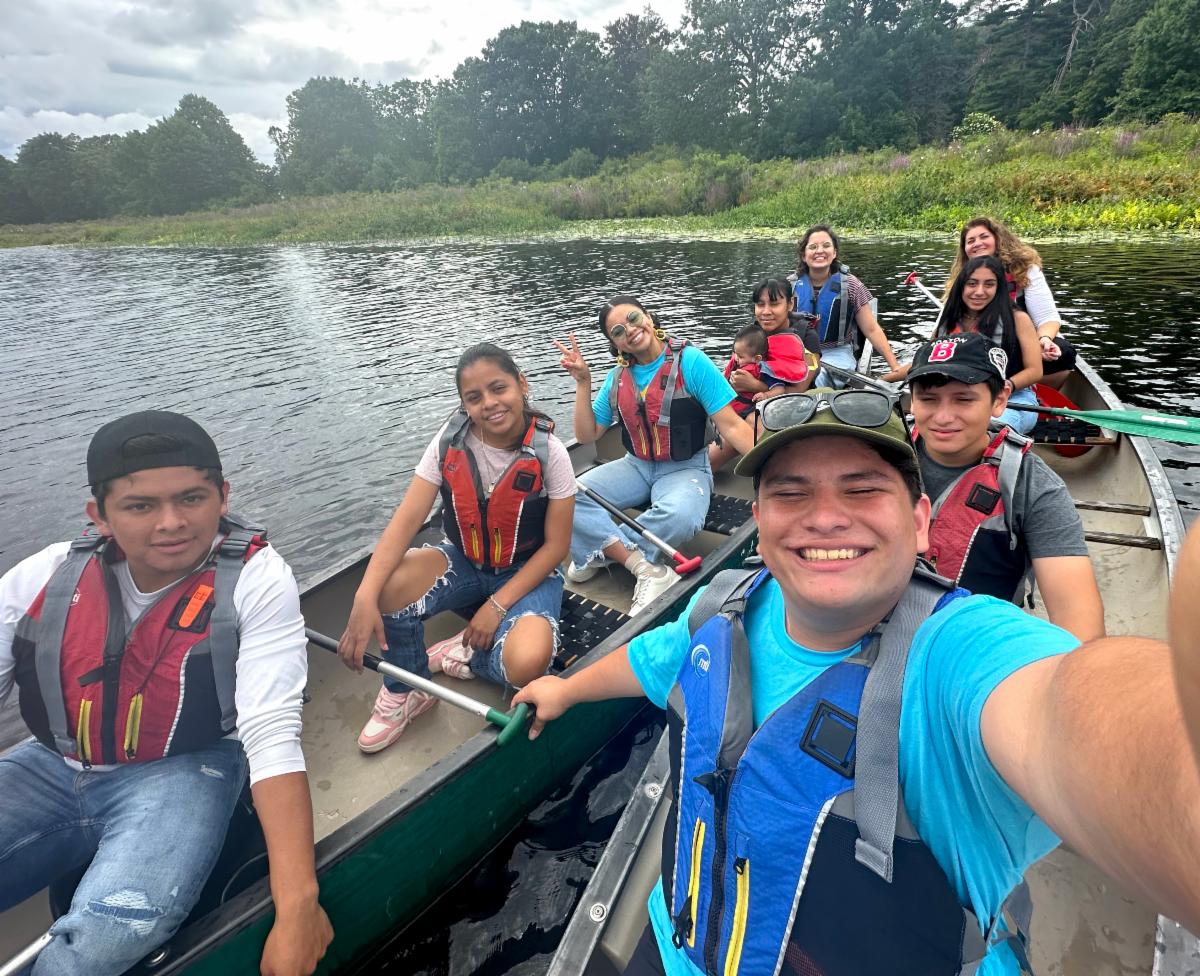 Pictured above: Grupo Monarca, WPY's support group for newcomer high school students, celebrating the end of summer programming with a canoe trip along the Charles River.