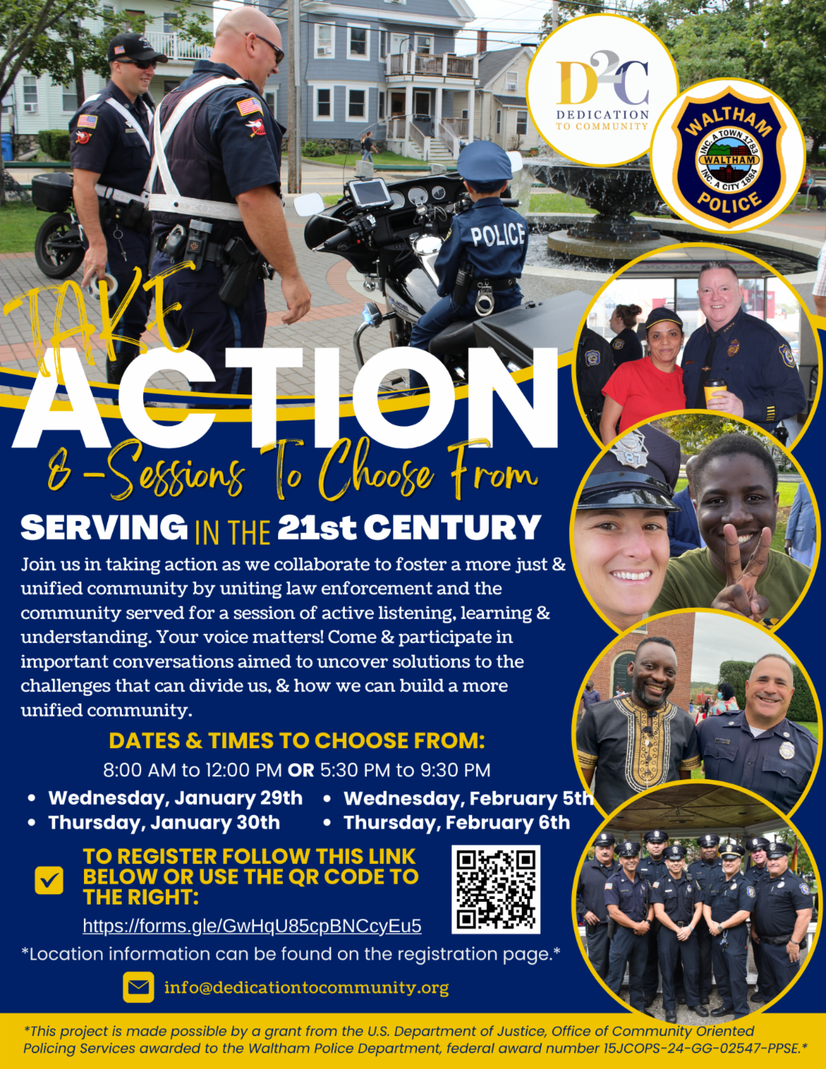The Waltham Police Department is partnering with Dedication To Community (D2C) to host community engagement workshops in early 2025. These workshops are no cost to the public and aim to foster trust, transparency, and understanding between the police and the community.