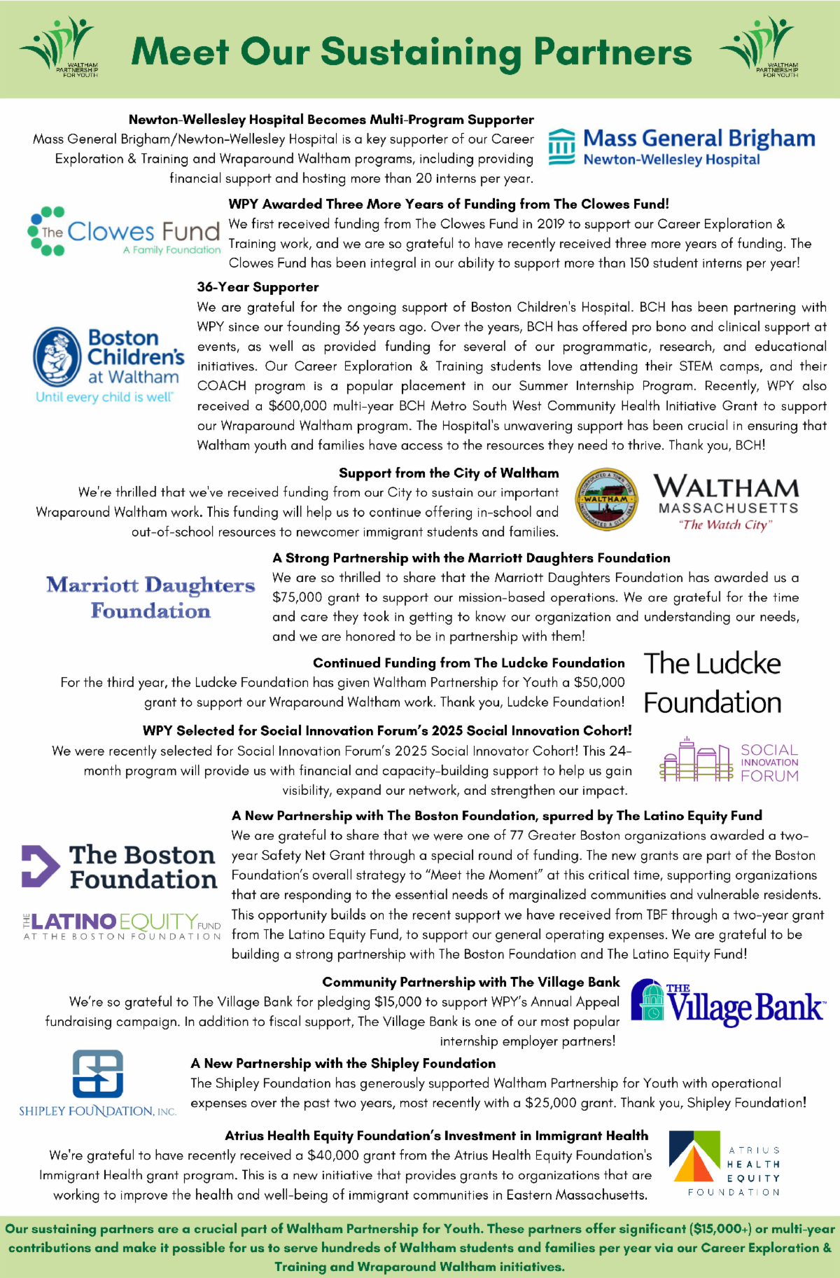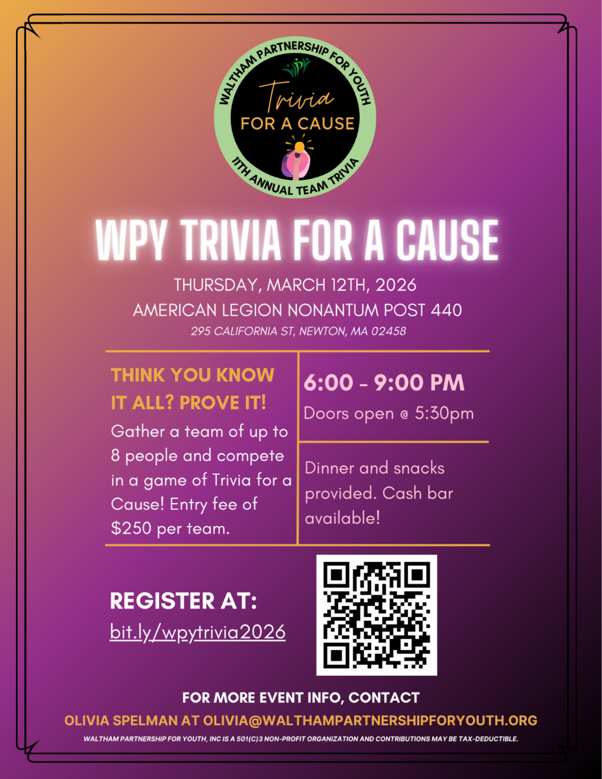 This month also included an exciting field trip for Waltham Valor High School (WVHS) students. WPY's Family & Student Engagement Senior Coordinator, Marlen Godinez, joined the WVHS students and staff for their community-building field trip to Hale Education in Westwood. Students and staff participated in different outdoor activities and challenges such as building campfires and sledding!