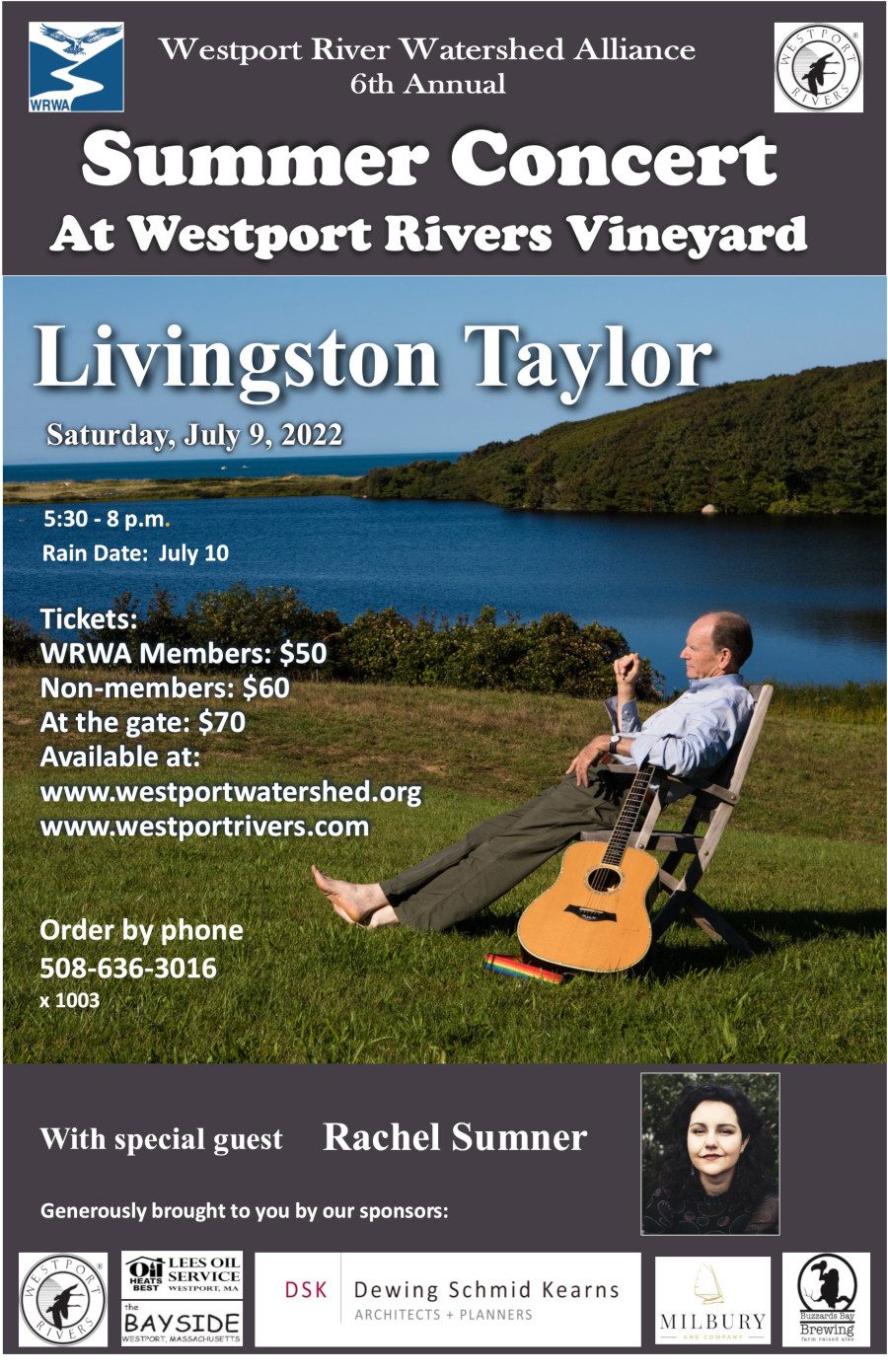 We are also very excited that we will be presenting both our annual Summer Concert featuring Livingston Taylor on July 9th (rain date July 10) at Westport Rivers Vineyard, and our popular Summer Gala on August 13.