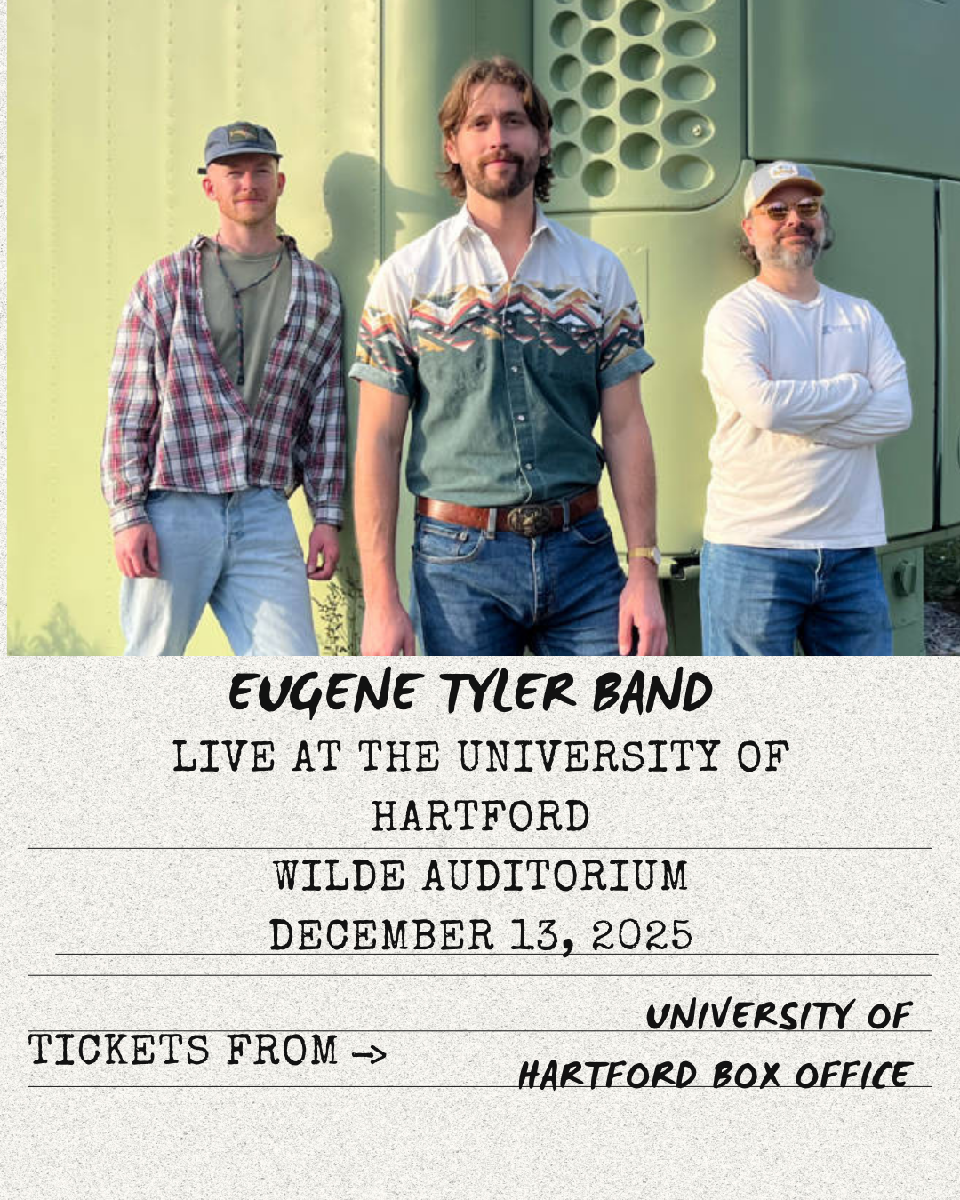 WWUH has a long history of producing live concerts. After a hiatus, I'm thrilled to report we are back in the concert "business". The Eugene Tyler Band will be performing Saturday, December 13th in the Wilde Auditorium right down the hall from the station. Tickets are available at the UHart Box Office or by calling 860-768-4228.