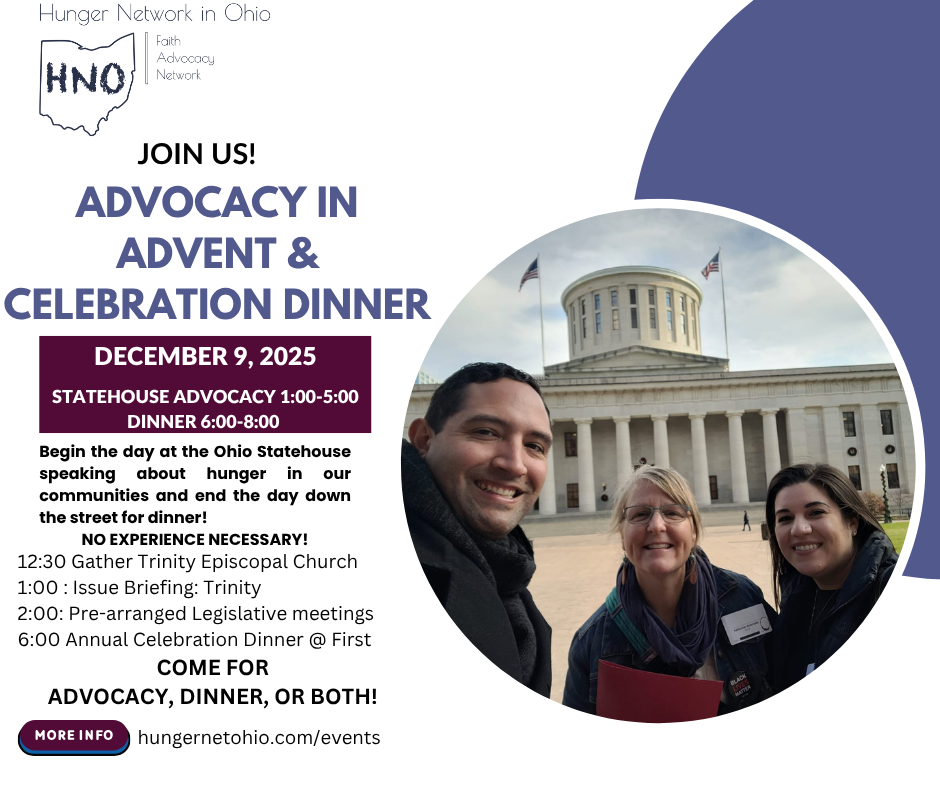 For those who are able, we also invite you to join us at 1:00 for a public policy advocacy briefing and legislative visits at the Ohio Statehouse. We will offer an advocacy briefing on the issues related to affordable housing and food security (including some opportunities we have to advance some legislation in 2026!) and talk about how we can share our stories with lawmakers to create meaningful change. This is a great opportunity for experienced advocates and first timers to visit the statehouse and see how their voice can create change in our world!