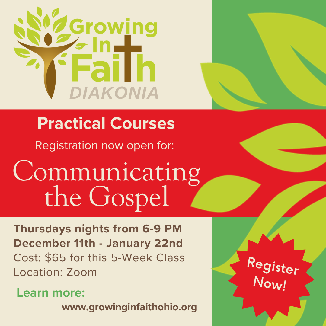 Registration is now open next Growing In Faith courses! Two virtual courses will run simultaneously every Thursday from 6:00-9:00 PM during the five weeks of December 11th to January 22nd! For Course 3, the Foundations Course is Intro to Old Testament and the Practical Course is Communicating the Gospel. If you are new to Growing in Faith, we always recommend starting with the Foundations Course.