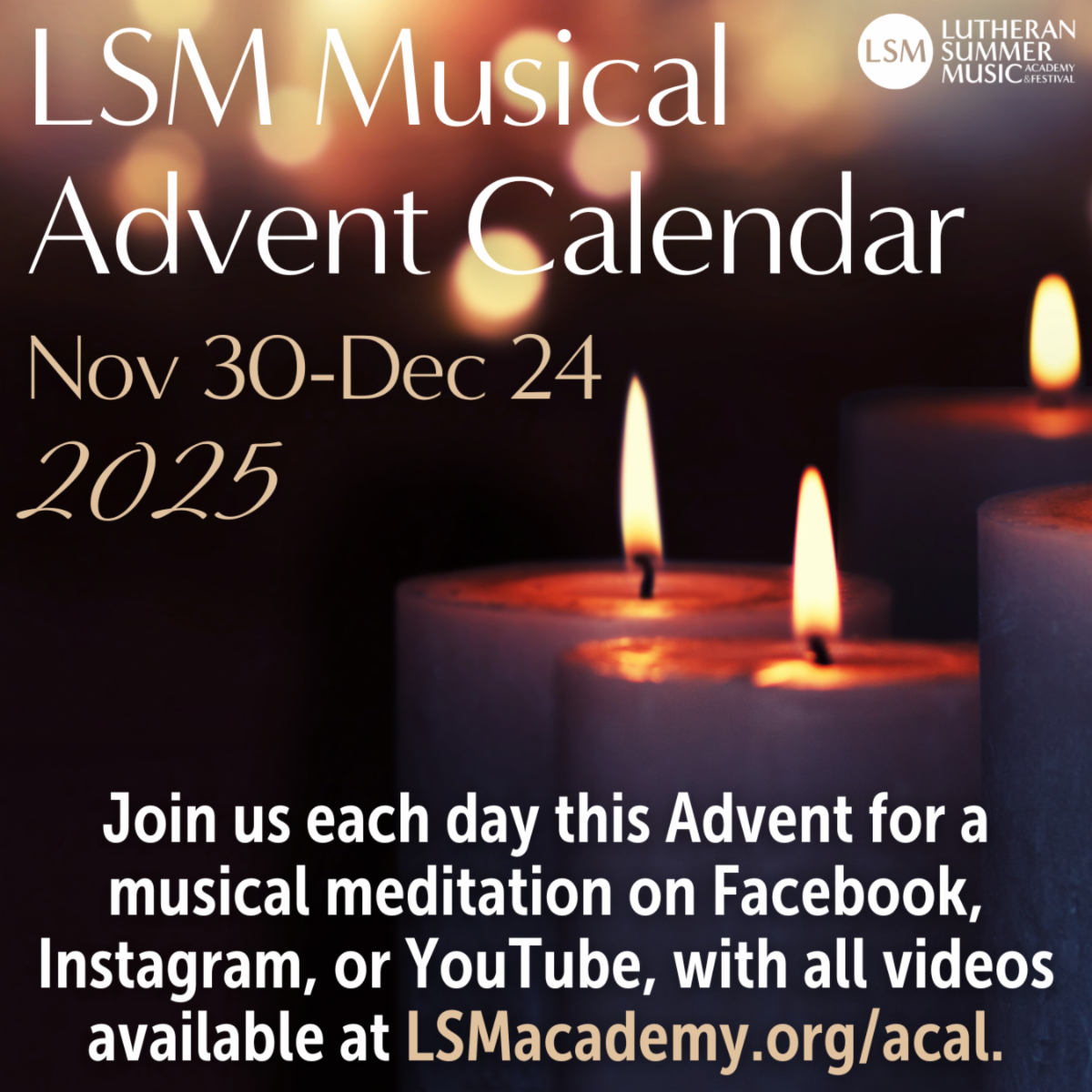 Follow along on Facebook, Instagram, or YouTube, with all videos archived at LSMacademy.org/acal.