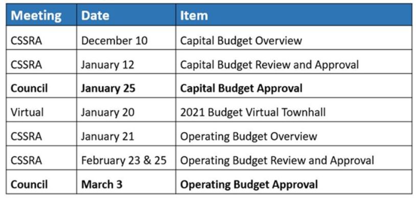 2021 Budget - Key Meeting Dates: