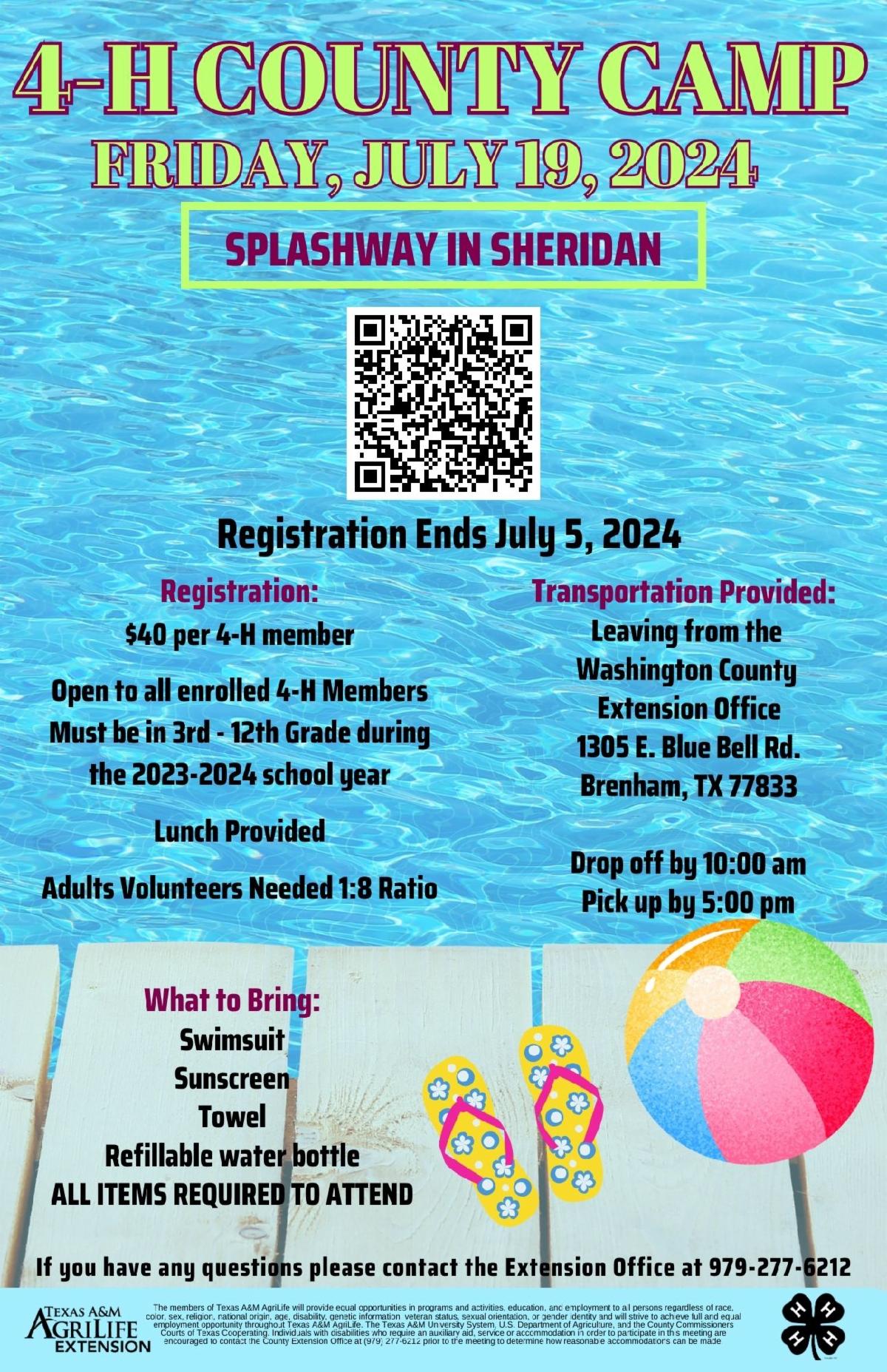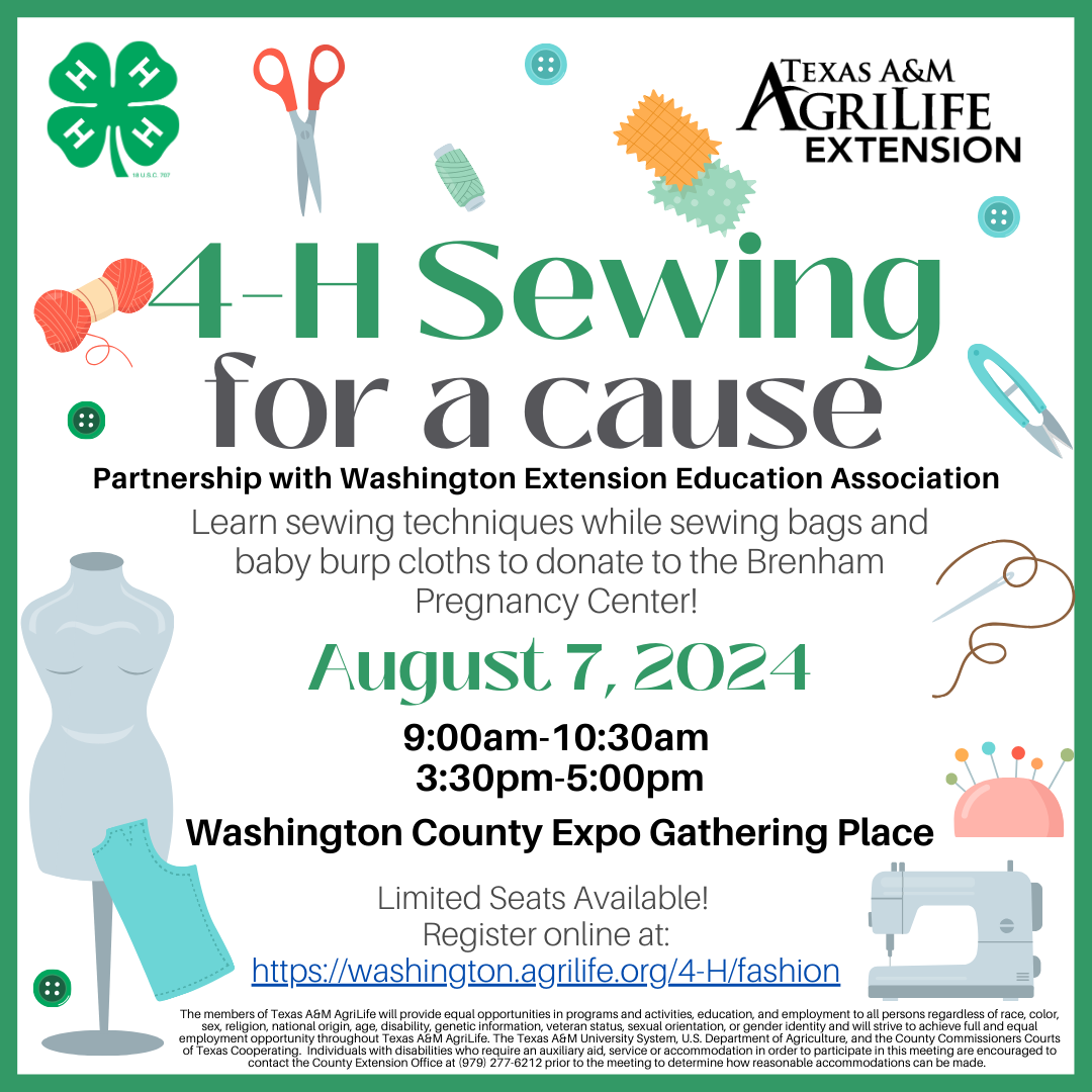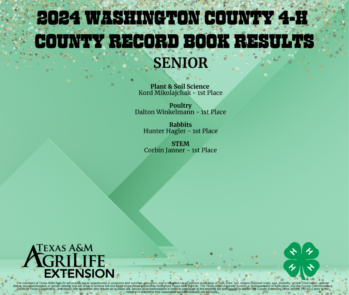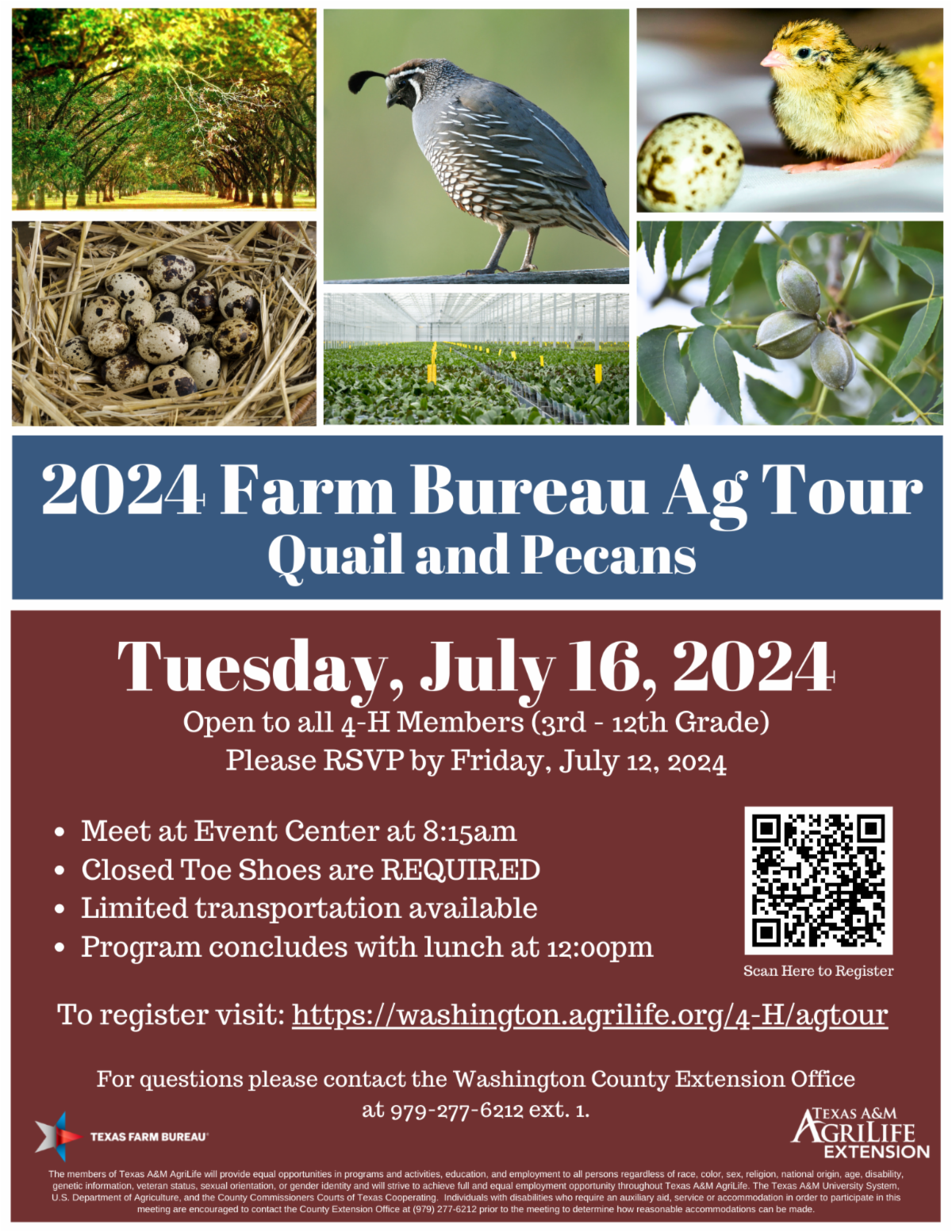 For more information, please contact the Texas A&M AgriLife Extension Office in Washington County (979-277-6212). Registration materials and more information can also be found on our website, https://washington.agrilife.org/.