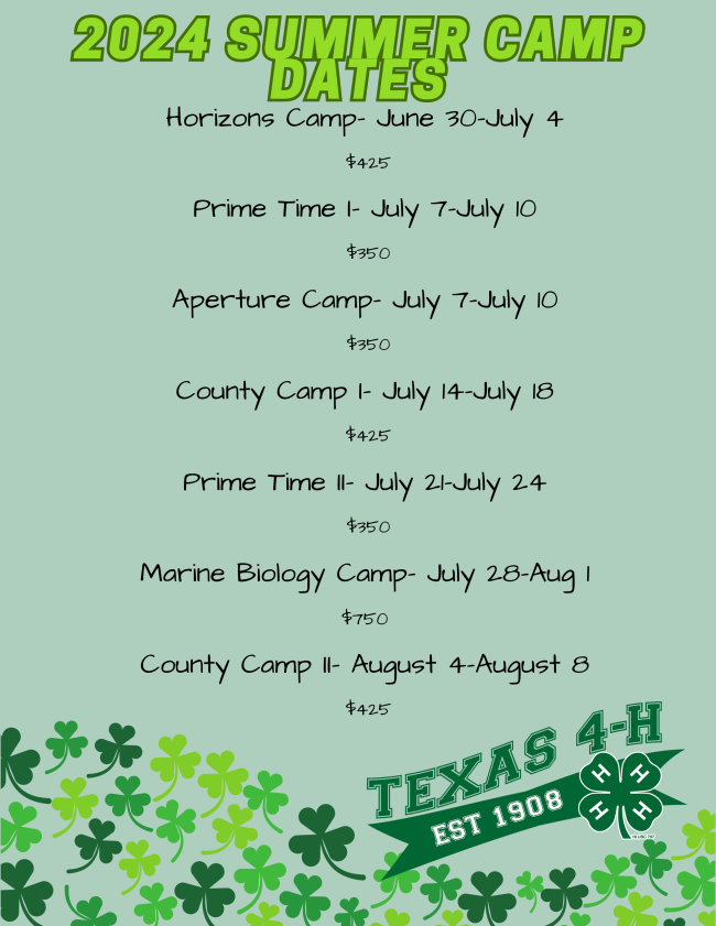 The program will take place on July 10, 2024, from 8:30 a.m. to 12:00 p.m. at the Washington County Expo Event Center in Brenham. The cost is $25 (4-H member) and $40 (non-member) per child. Children aged 8-14 are eligible to register, but please note that space is limited to 20 participants. So, we encourage you to register early to secure a spot for your child!