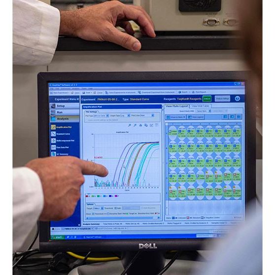 To determine how much virus is present in the sample, the researchers use P.C.R., the same method used to test people for the virus. They put the RNA they’ve extracted into the tiny wells of a P.C.R. plate and then slide the plate into a machine known as a thermal cycler.