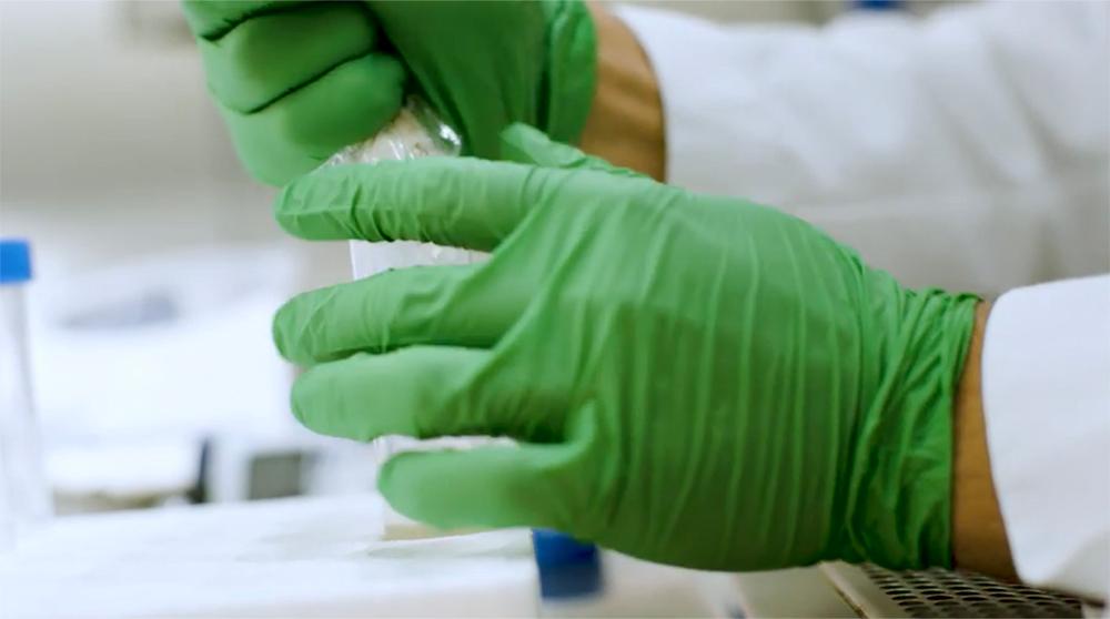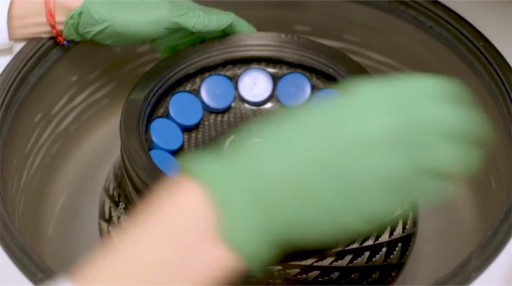The sample incubates in the fridge overnight and then spins in a centrifuge. When the process is complete, the researchers are left with a tiny pellet of virus.