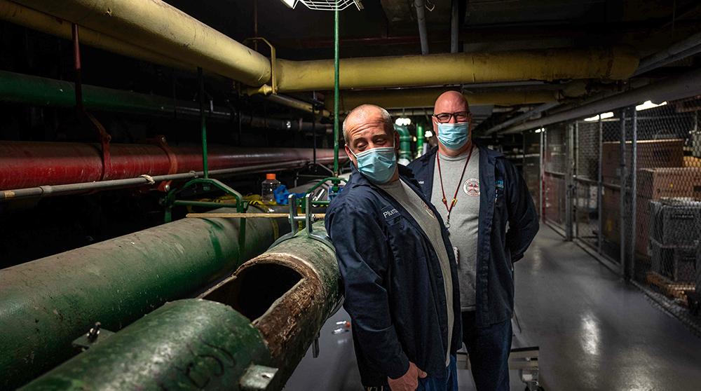 “This is our baby,” John Reilly, the supervisor plumber at Elmhurst, said, banging on the outside of the pipe. Every Monday, a member of the wastewater team drops a collection device, which the team calls the Contraption, into an opening in the pipe.