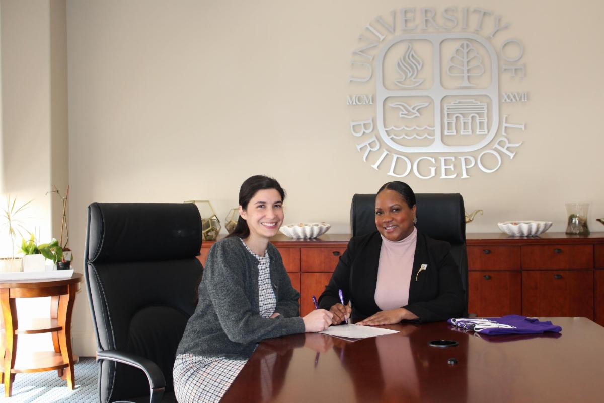Career Readiness Week Photo Highlights | | Partnership Agreement Signed with the University of Bridgeport | | From left to right: Allison Garris, Ed.D., UB’s Dean of Admissions and Kelonda Maull, Waterbury Promise’s Executive Director, at an MOU signing event. | |