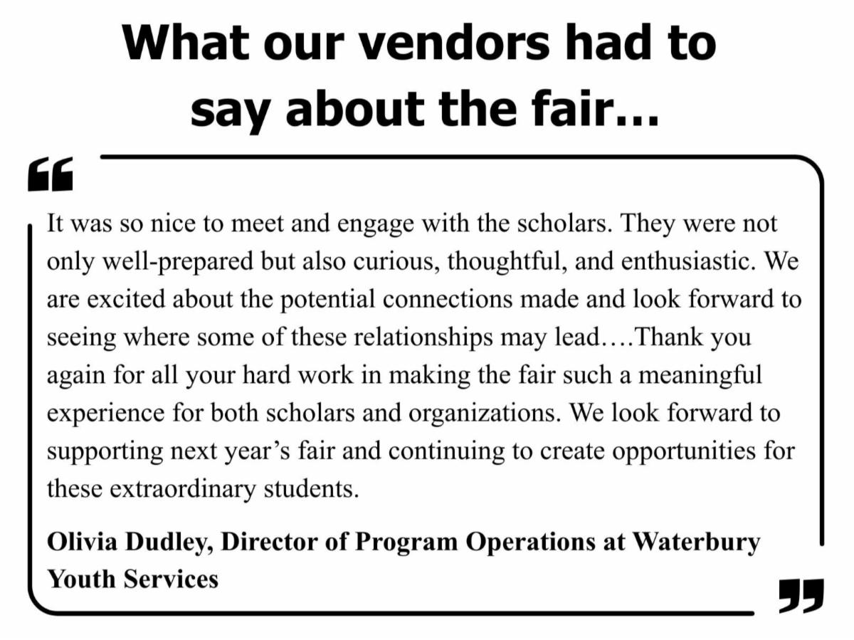 The 26 companies and organizations that joined us at our 3rd Annual Career and Internship Fair and spent quality time with Waterbury’s best and brightest!