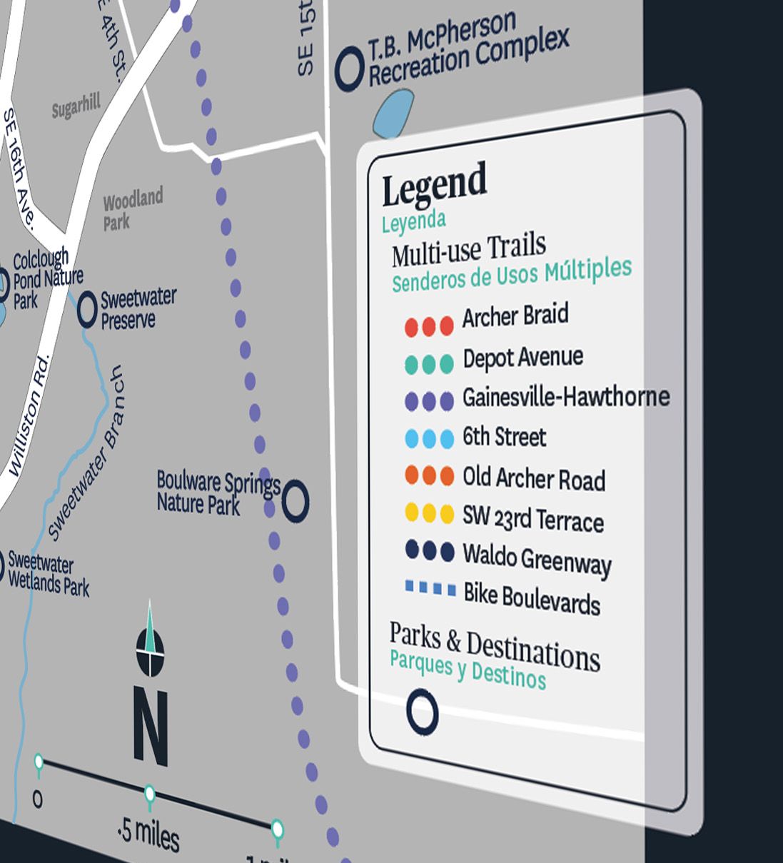 Department of Transportation staff collaborated with the Bicycle Pedestrian Advisory Board on the signage suite's design, content and trail etiquette guidelines. The signs were designed in-house by Wild Spaces & Public Spaces staff.
