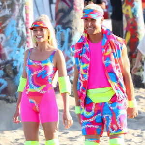 Margot Robbie and Ryan Gosling Rollerblade in Neon at Venice Beach While Filming Barbie Movie