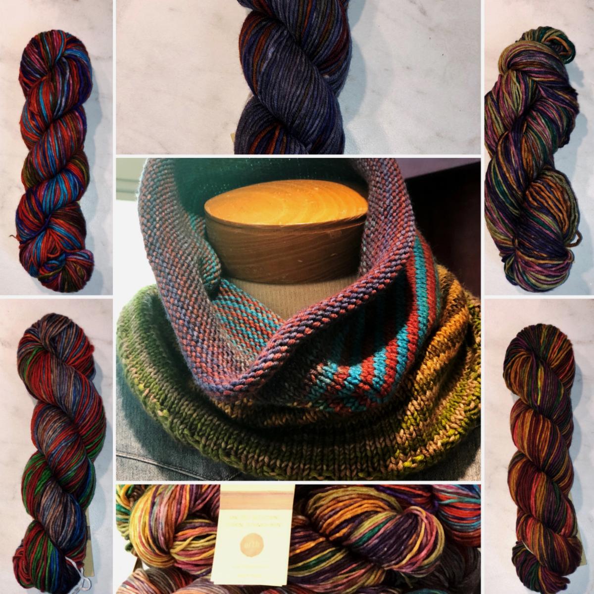 cowl included in this newsletter. It is a quick knit and uses just one skein of the magically striping Uneek Worsted. It is such fun to watch the colors evolve. We will continue to include more gifting projects. In addition to our many “tried and true” projects, we are testing patterns and yarns to share with you over the coming weeks.