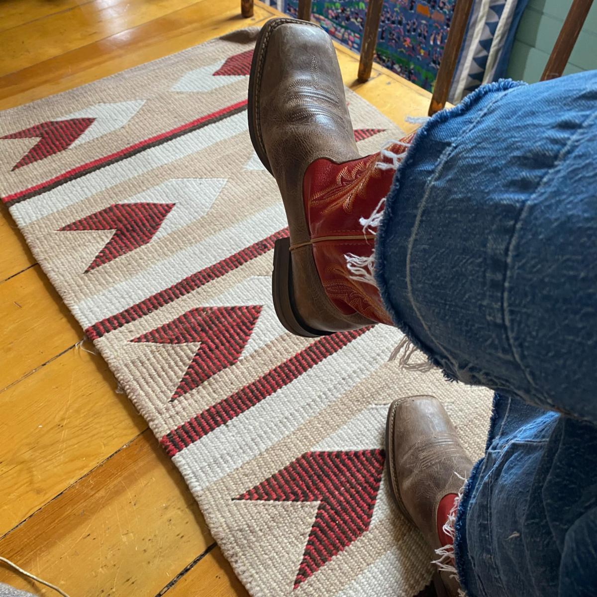 Have I invested the time to get to know someone well enough that the small, impulse purchase is actually the right thing? My life long friend, Veronika, knows I love nothing better than a good laugh and silliness. When I was feeling down a couple of years ago she sent me a surprise package to cheer me up. It was the single, most hideous thing I have ever been given- a neoprene fanny pack printed with the photograph of a bare, hairy, man-belly. I guffawed so loudly while opening the box on my porch it brought my neighbour to the window to see what was going on! We don't carry hairy belly fanny packs here (I wonder if I could make a convincing tapestry of one?), but we do have plenty of yarn, a few Malabrigo "Entramado" knitting kits, natural dye kits... and of course, gift certificates. I was telling someone this morning that there is nothing impersonal about a gift certificate. Knowing that someone is happier choosing their own yarn/tool/hat means you have spent the time getting to know them. The second path is the gift that was made with time, attention, and intention. The time could be mine, or someone else's. While it is not for sale, the first rug below is an example of what I am talking about. I forget the name of the weaver at the moment, but she was a very well known rug maker who spent her creative life trying to bring recognition and respect to the Navajo weavers she learned from. When I stand on this rug, I stand in a space created by her effort, her desire to learn and share, and her passion for a tradition that was threatened at the time she made this rug. The second rug (which is for sale) is one that I have finally finished that was woven with the last Icelandic wool to come out of Sunnyside Farms in Janesville, CA. It's an entirely experimental rug that I loved making, and I hope whoever standing on it can feel the care that went into the raising of the sheep, the calm joy of the weaving, and the warmth it generates.