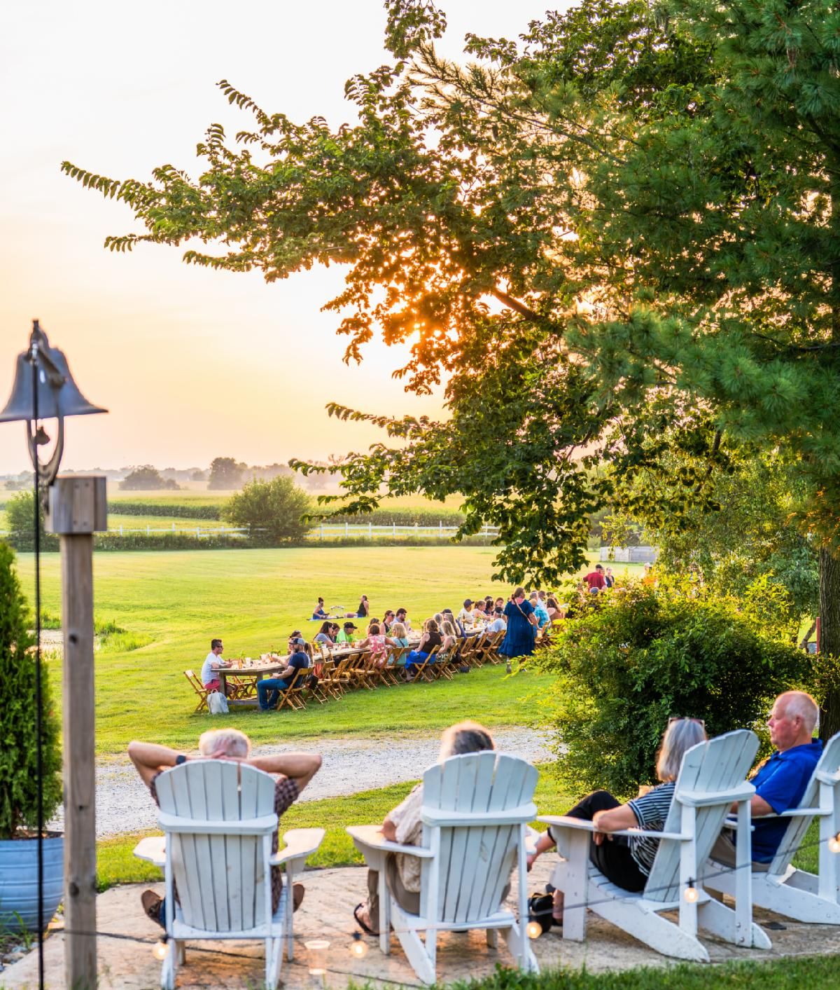 Table pop-ups set in different corners of the property — orchard, prairie, pasture.