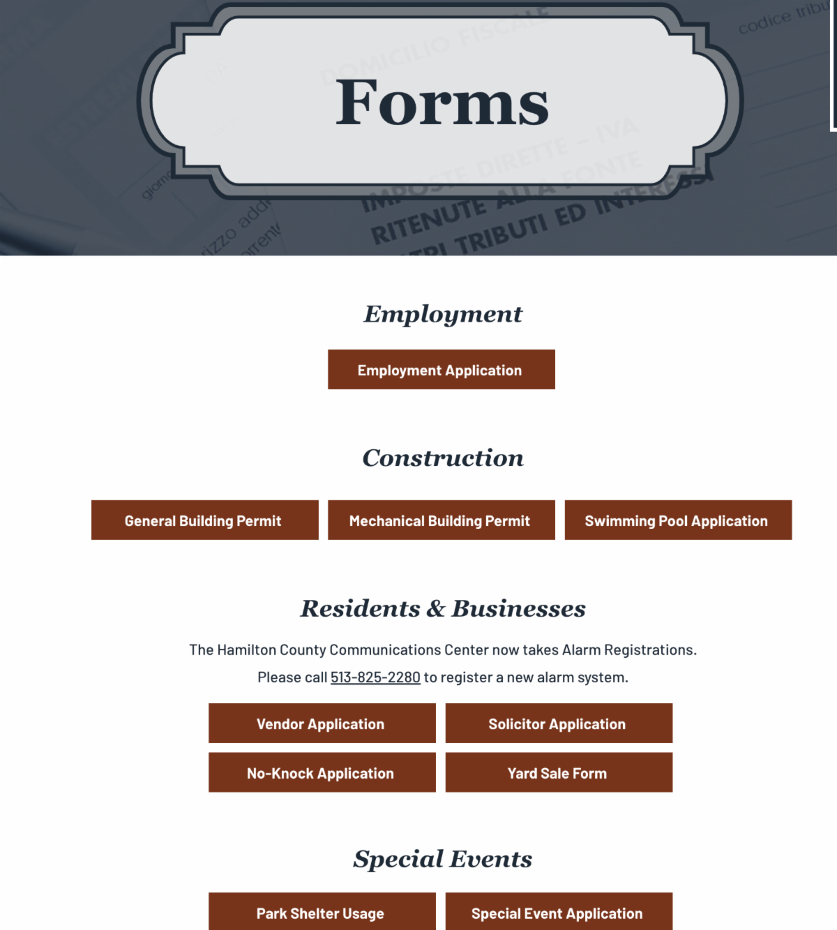Whether it’s overgrown weeds, junk accumulation, inoperable cars, or other concerns, your voice matters. Help us maintain the charm and integrity of Cleves by reporting issues in your area. Just go to our website at the bottom of this page, locate SERVICES, click on it, and look for Zoning, and you will have access to the page below.