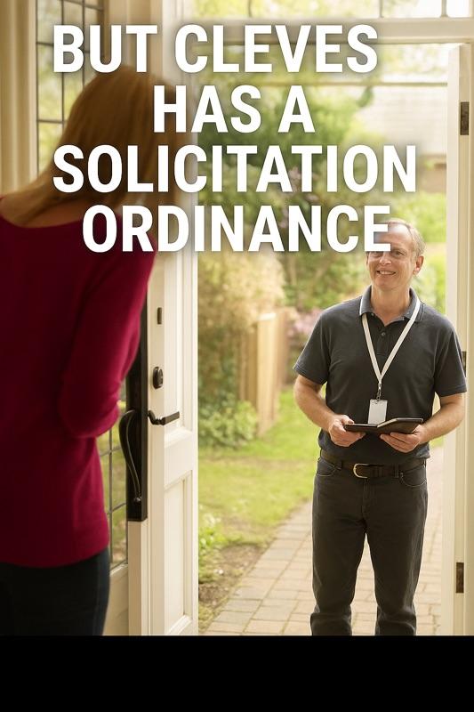 The Village of Cleves is taking important steps to protect residents from unwanted solicitation, scams, and potential identity theft by formalizing a process that regulates door-to-door sales. These efforts are not only about safety and privacy—they are about giving residents peace of mind and control over who is allowed to approach their homes.