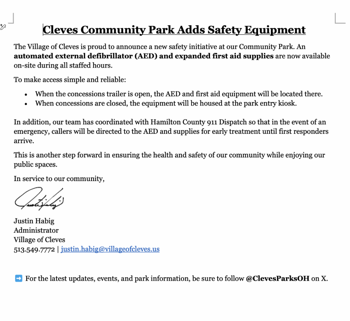 By working together and following this process, we can protect the integrity of our community and the privacy of our residents. We thank you for your cooperation and continued commitment to making Cleves a safe and respectful place to live.