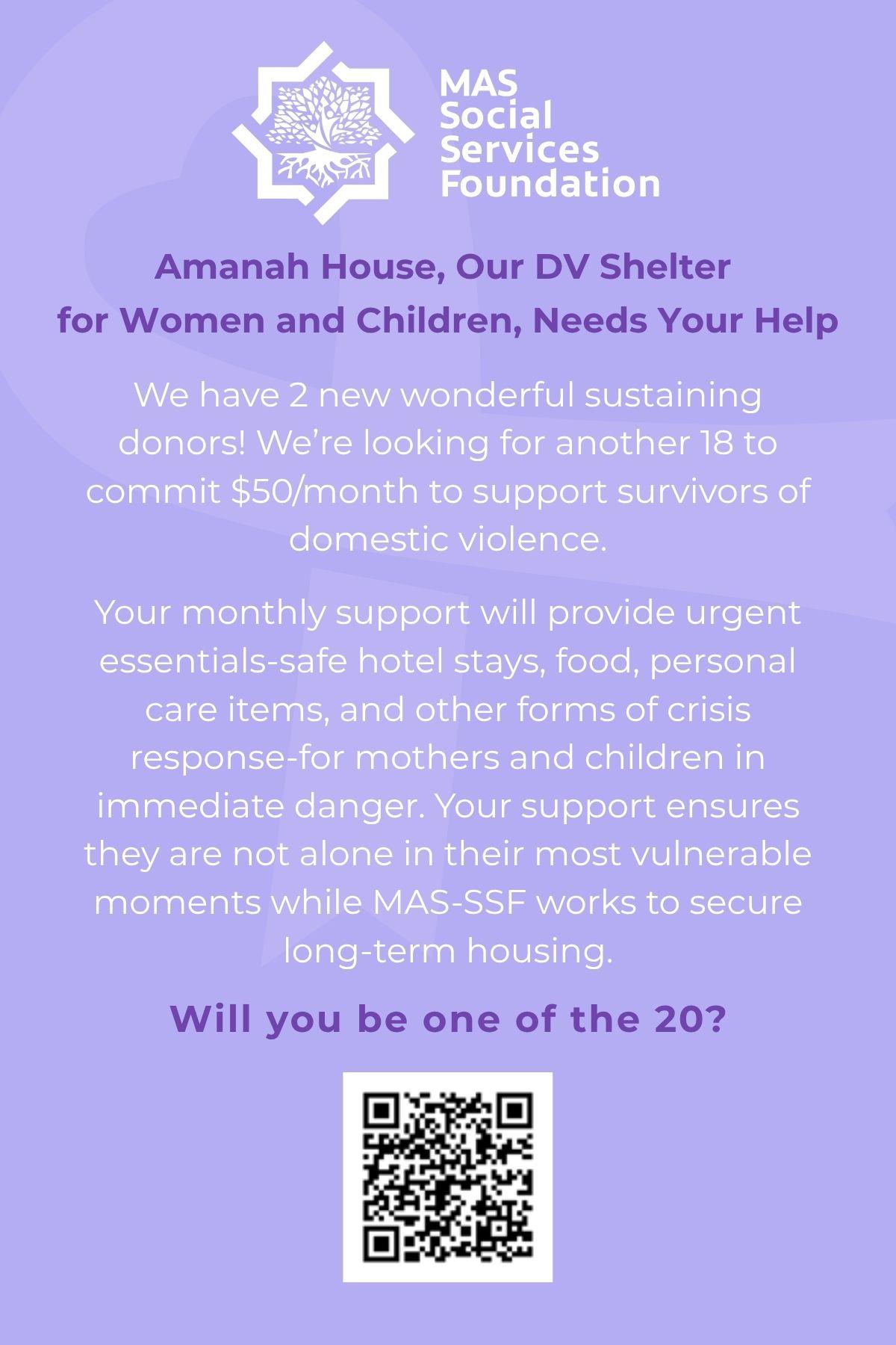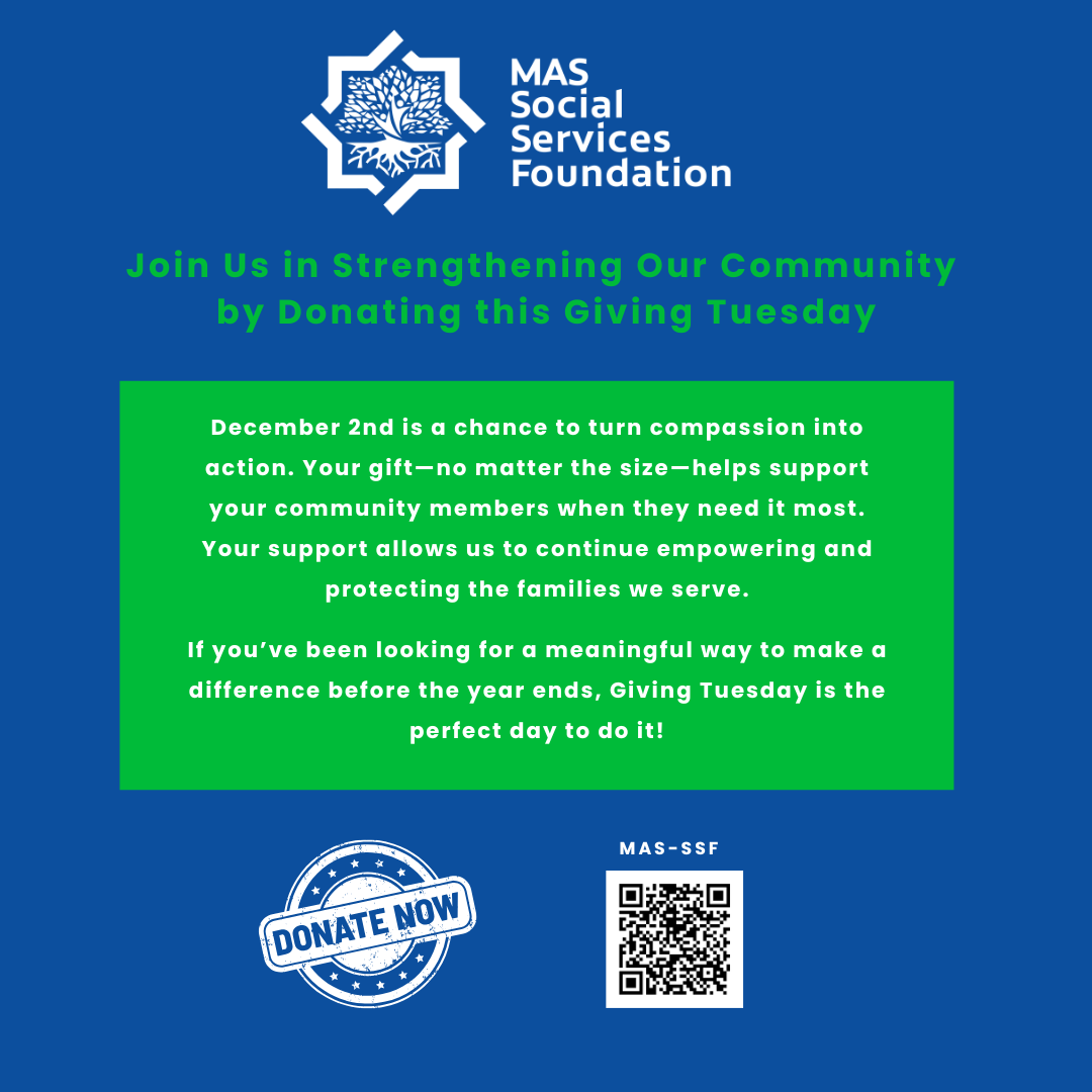 Thank you for being a supporter of Muslim American Society - Social Services Foundation, either by attending our classes/workshops or through your contributions. We appreciate your continued support.