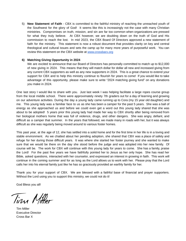 If you are on the CBX mailing list, you will also receive this letter in the mail in the next week. God Bless you all and thank you!
