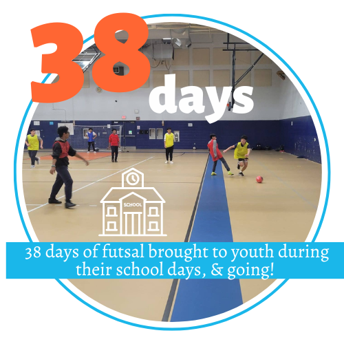 Off-Season Futsal Reflection | Our busy futsal season meant kids accessing critical year-round sports pathways. Some highlights meant increasing playtime by 53% from 2022, connecting 233 youth of all ages, including engaging 98 new families! We also remain grateful to our Lawrence YWCA friends for the gym space so that in addition to all this play, we could continue our leadership through sports model with 20 Jr. Coaches & Coach Mentors leading activities with 90% from Lawrence. | | |