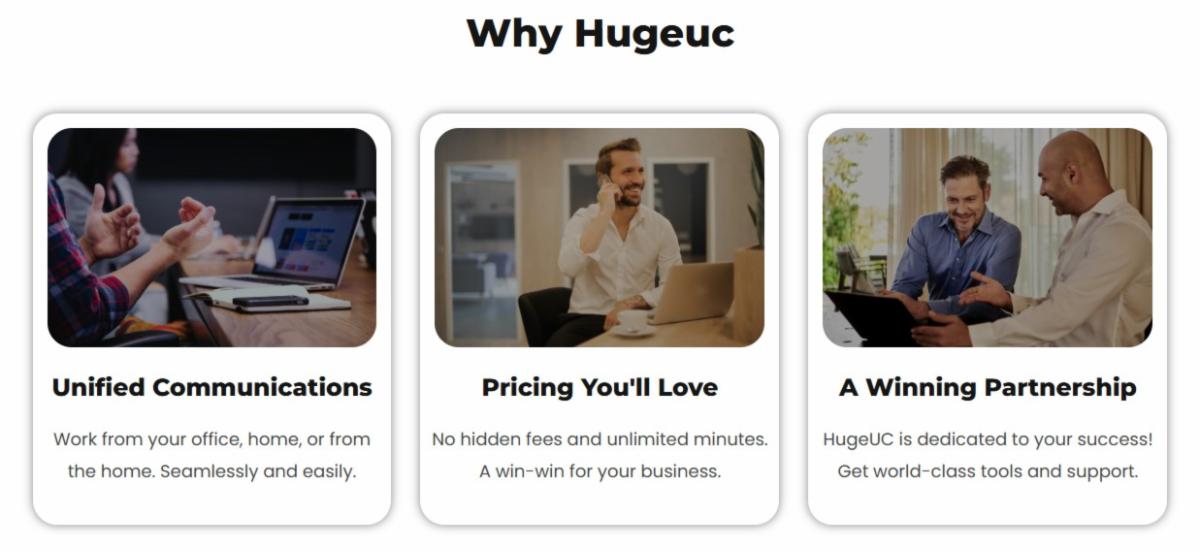We recently transitioned to a new phone system with HugeUC, and I couldn't be more impressed. The installation team had everything configured professionally, and the rollout went off without a hitch. Nearly every question or issue was resolved immediately. Best of all — the phones were free as part of their promotion.