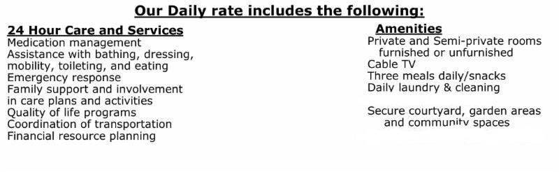 At Senior Living Systems, assisted living program, our care specialists tailor an Individualized Service Plan (ISP) to provide each resident with the help they need with activities of daily living, including: dressing, medication assistance, housekeeping and laundry, bathing, and other individualized services. |
