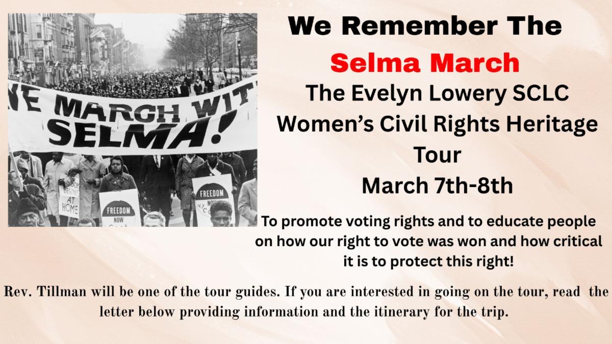 I'm writing to invite you to attend the SCLC WOMEN's Civil Rights Heritage Tour, March 7th - 8th.