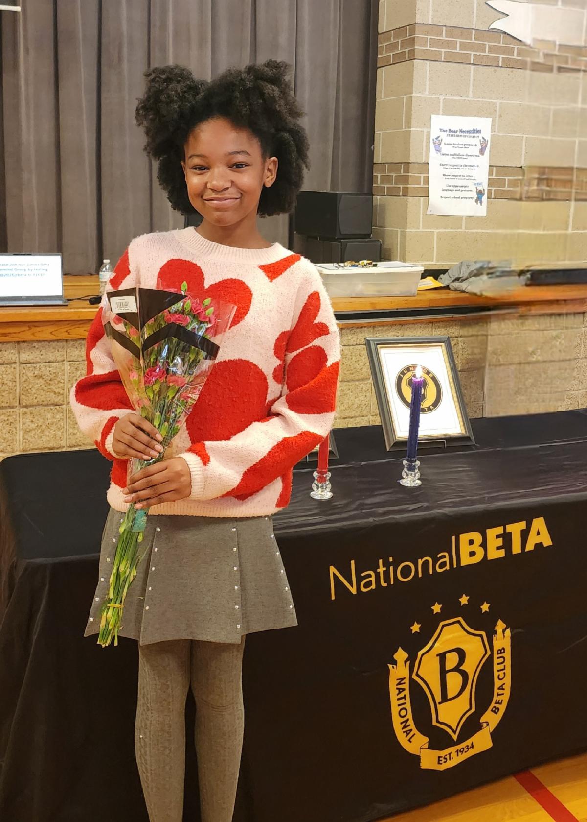 Congratulations to Bailey. Bailey was inducted into the Junior Beta Club. Bailey, we are proud of your academic excellence and leadership.
