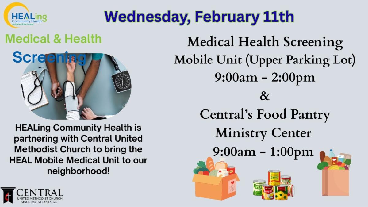 Food Pantry Distribution, 9:00am (Ministry Center) | Mobile Health Screen, 9:00-2:00pm (Upper Parking Lot| Wednesday Evening Bible Study, 7:15pm (Virtual)