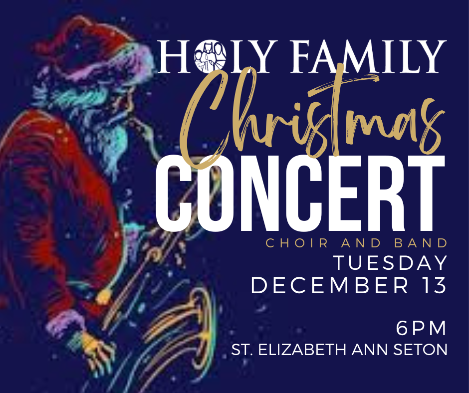 December 13 Holy Family Christmas Choir/Band Concert at SEAS at 6 PM