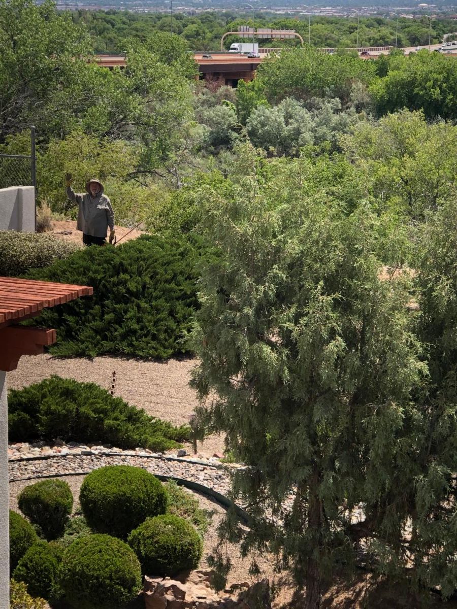 Doug pruning shrubs in the backyard...