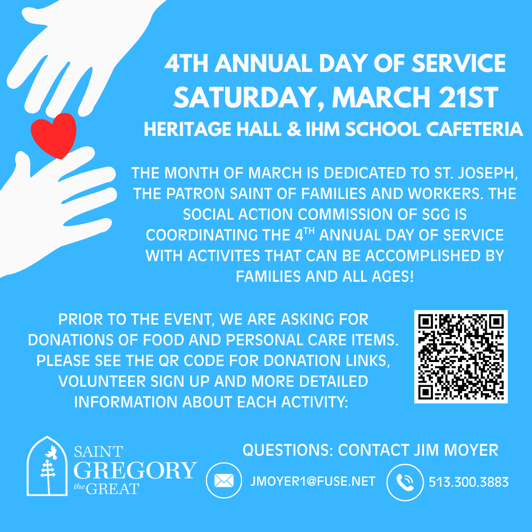 We are always in need of helpful hands to keep an eye on our students in grades K-8 during lunch. Please consider sharing a small part of your day to assist. All volunteers must be SafeParish trained. If you are interested, please sign up!